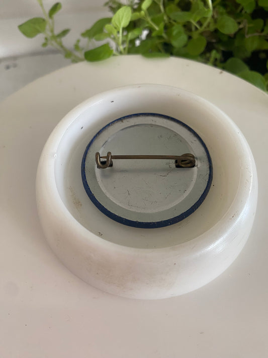 Vintage 1951 Fishing License Pin and Milk Glass Furniture Coaster