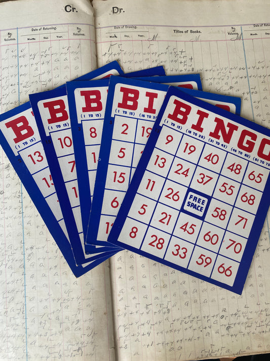Vintage Red, White, and Blue Bingo Cards Set of 5 (3 sets available)