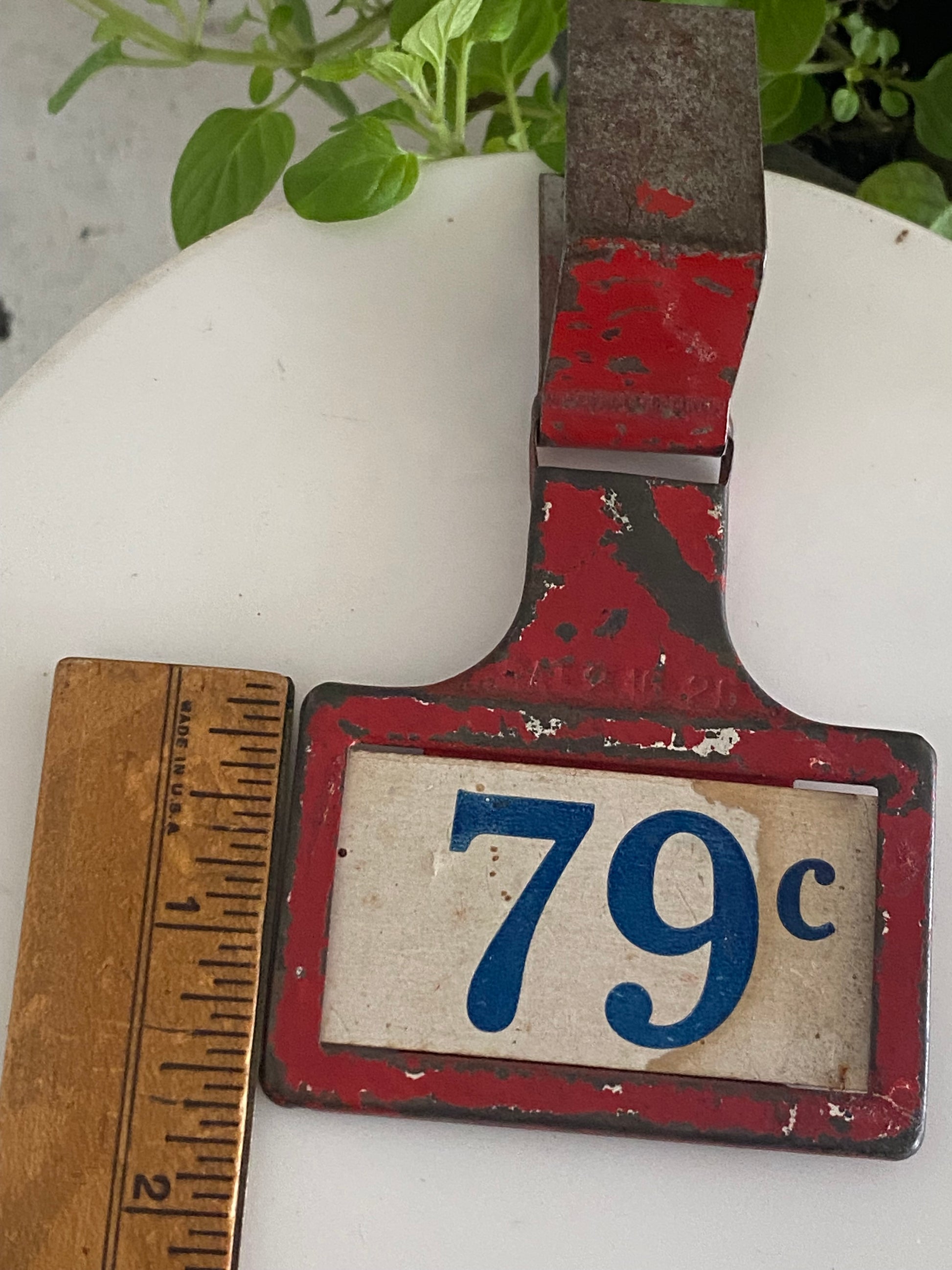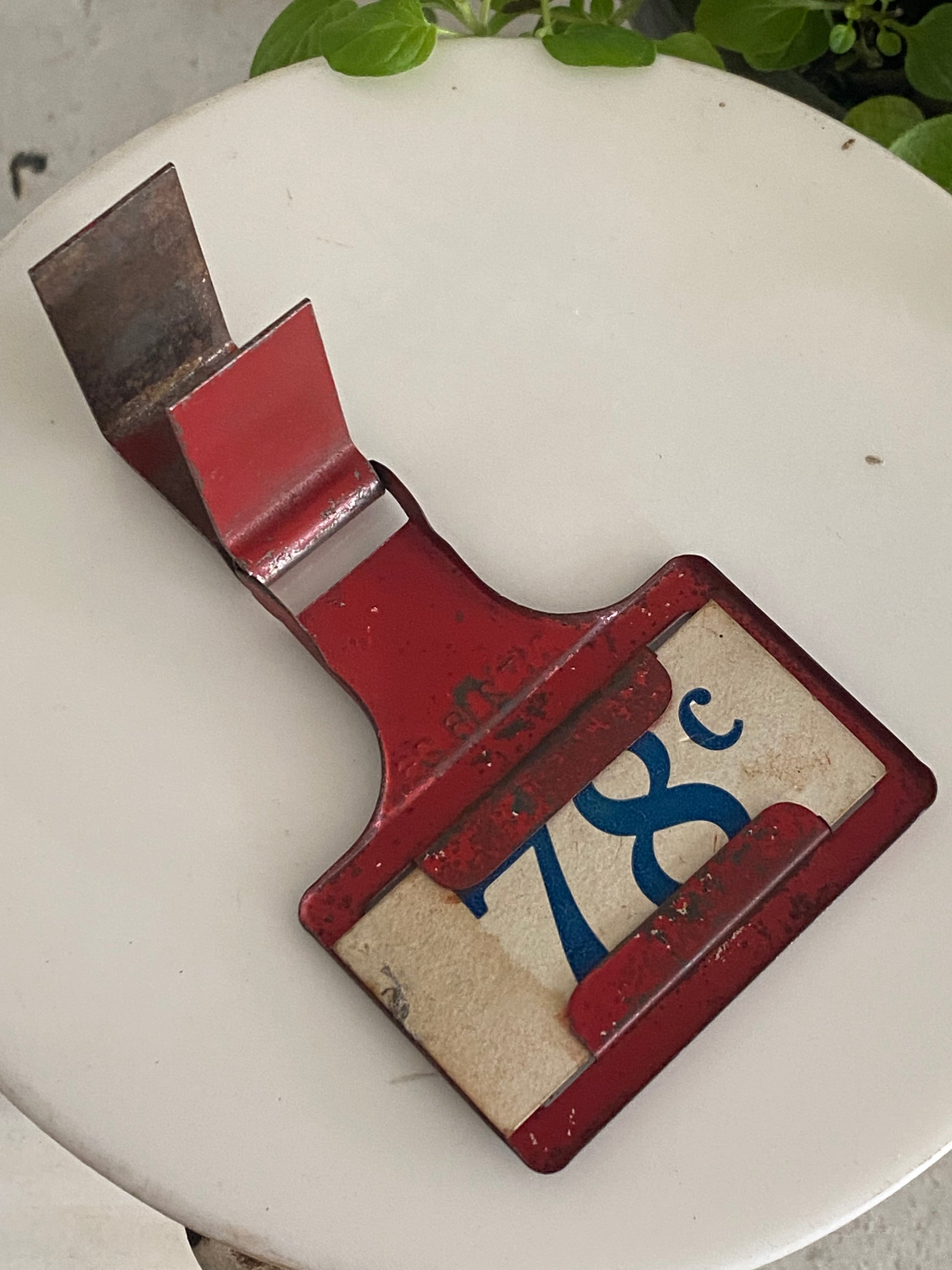 You know that I absolutely love red, white, and blue vintage everything! I also love vintage price tags. So when I spotted this incredible red, white, and blue vintage price tag I had to take a moment to contain my wild enthusiasm. Oh-my-goodness!!! The patina and grand size are everything. Just an amazing unique find that I knew you would adore and appreciate too. Can’t wait to see who snatches this beauty up!